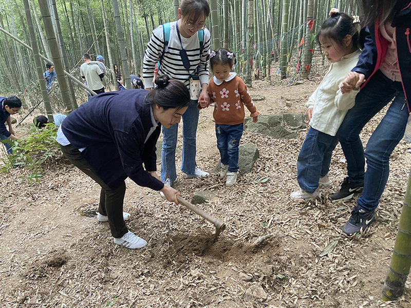 春日里的第一站,是臨安白水澗景區。大家呼吸著春日的氣息,融入綠意里,賞澗之幽、水之清、竹之翠、石之奇,彷佛置身桃源……遠山蜿蜒,細霧如紗,竹影婆娑,綠意盎然。竹筍才生黃犢角,蕨芽初長小兒拳,正是春筍好時節。大家游竹海、挖春筍,個個挽起袖子,勁頭十足,挖得熱火朝天。幾鋤頭下去,酣暢淋漓,一顆顆小筍子,透鮮透鮮的,被小心地翻開上層的泥土,冒出頭來,撞上春日的第一縷陽光。大家興奮地捧著自己挖的筍,享受著團結協作、共同勞動的喜悅。
