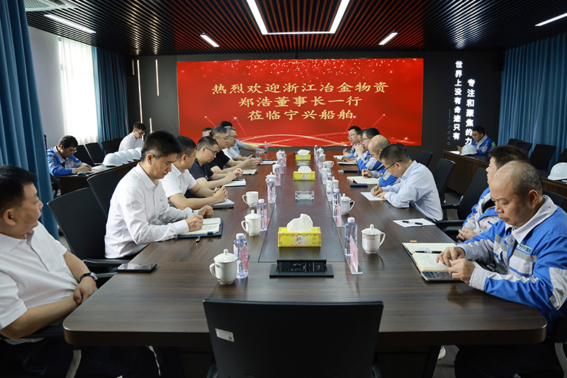 6月12日,冶金物資黨委書記、董事長(zhǎng)鄭浩帶隊(duì)前往舟山寧興船舶修造有限公司進(jìn)行實(shí)地調(diào)研。寧興船舶董事長(zhǎng)王文彤、總經(jīng)理江創(chuàng)宏等熱情接待,并陪同參觀交流。