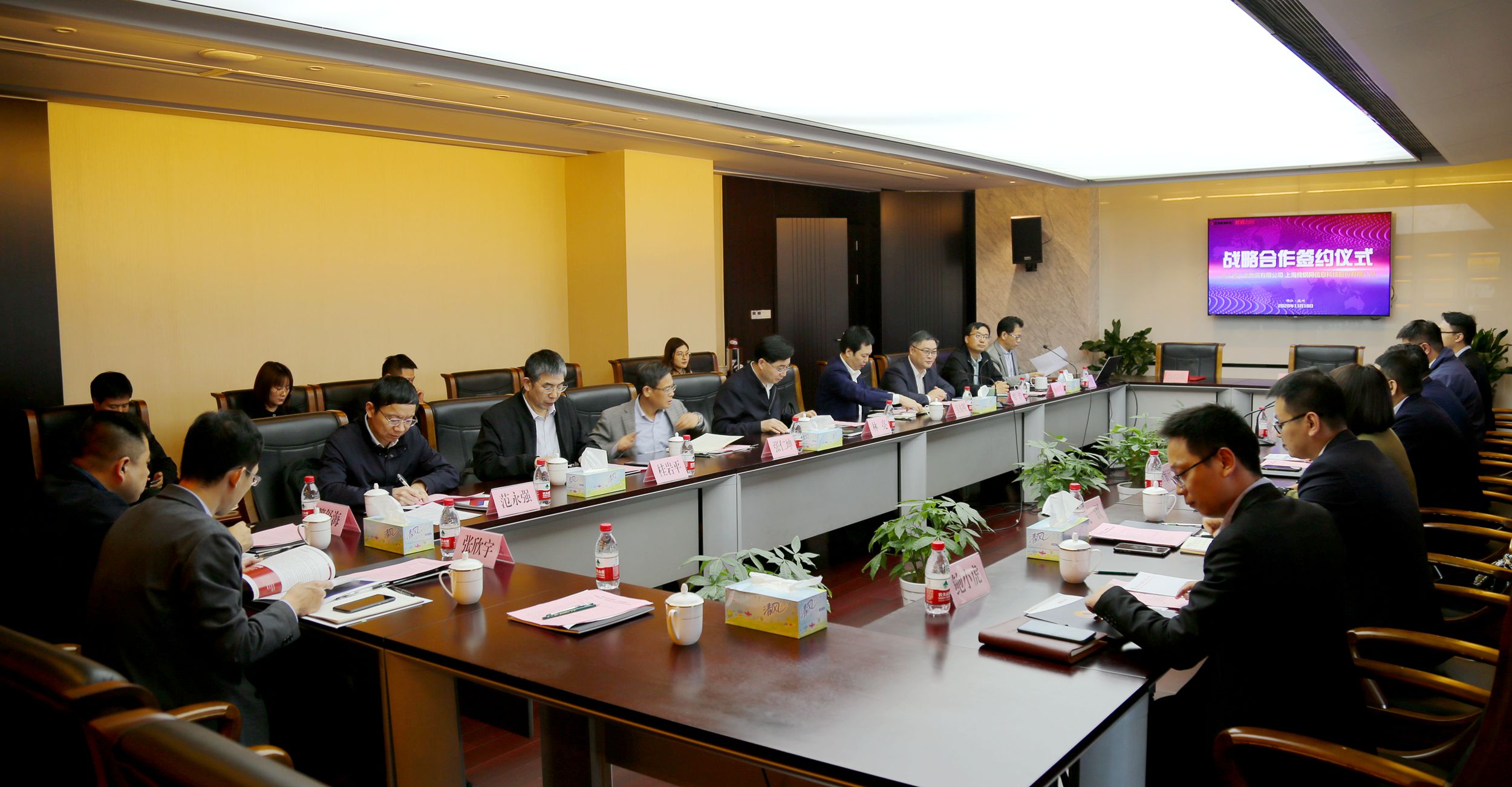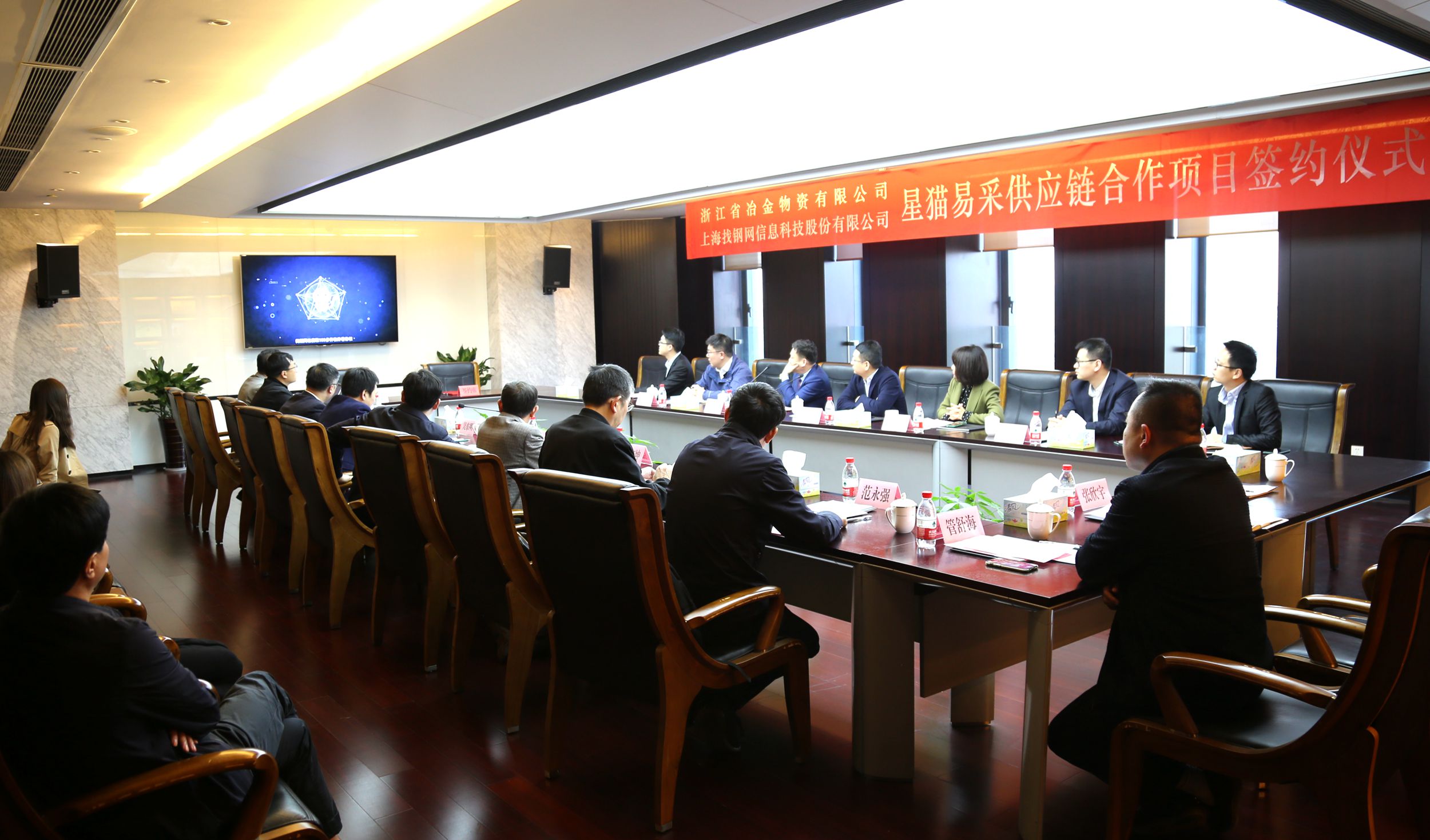 11月10日,冶金物資和找鋼網(wǎng)舉行了戰(zhàn)略合作簽約儀式。雙方在2017年開展優(yōu)勢互補的戰(zhàn)略合作基礎上,聯(lián)合推出“星貓易采”供應鏈戰(zhàn)略合作項目,并將進一步在利用互聯(lián)網(wǎng)、云計算等新技術助力傳統(tǒng)行業(yè)數(shù)字化轉型等方面,加強資源共享、共建共贏,共同開創(chuàng)電商平臺合作新模式。集團黨委副書記、總經(jīng)理林亮,副總經(jīng)理吳東明,找鋼網(wǎng)創(chuàng)始人、CEO王東,黨委書記、高級副總裁宮穎欣,集團公司、經(jīng)濟運行部、戰(zhàn)略發(fā)展部、杭鋼云計算公司、商貿集團和找鋼網(wǎng)鋼廠運營事業(yè)部、電商事業(yè)部、胖貓物流事業(yè)部等相關領導出席會議。